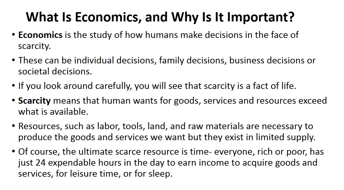 • 当然,最终的稀缺资源是时间——每个人,无论贫富,每天只有24小时可以用来赚取收入以获取商品和服务,用于休闲或睡眠。