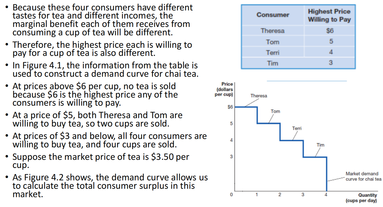 Figure 4.5 shows that at this level of output, the marginal benefit from the last cup sold is 1.80.