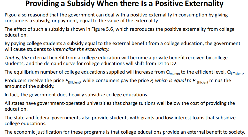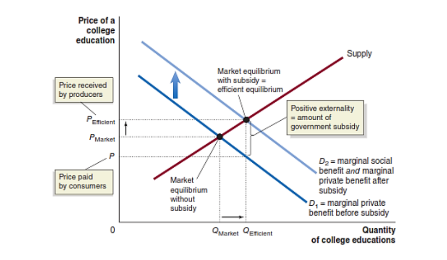 The effect of such a subsidy is shown in Figure 5.6, which reproduces the positive externality from college education.