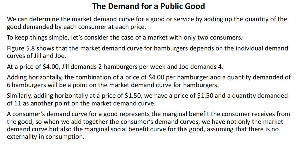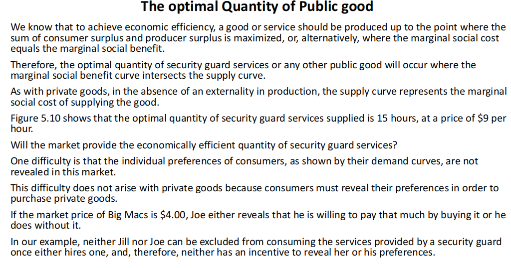 • Figure 5.11 shows that with a common resource such as wood from a forest, the efficient level of use, QEfficient, is determined by the intersection of the demand curve, which represents the marginal social benefit received by consumers, and S2 which represents the marginal social cost of cutting the wood.