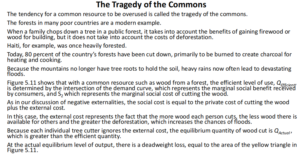 • Notice that our discussion of the tragedy of the commons is very similar to our earlier discussion of negative externalities.