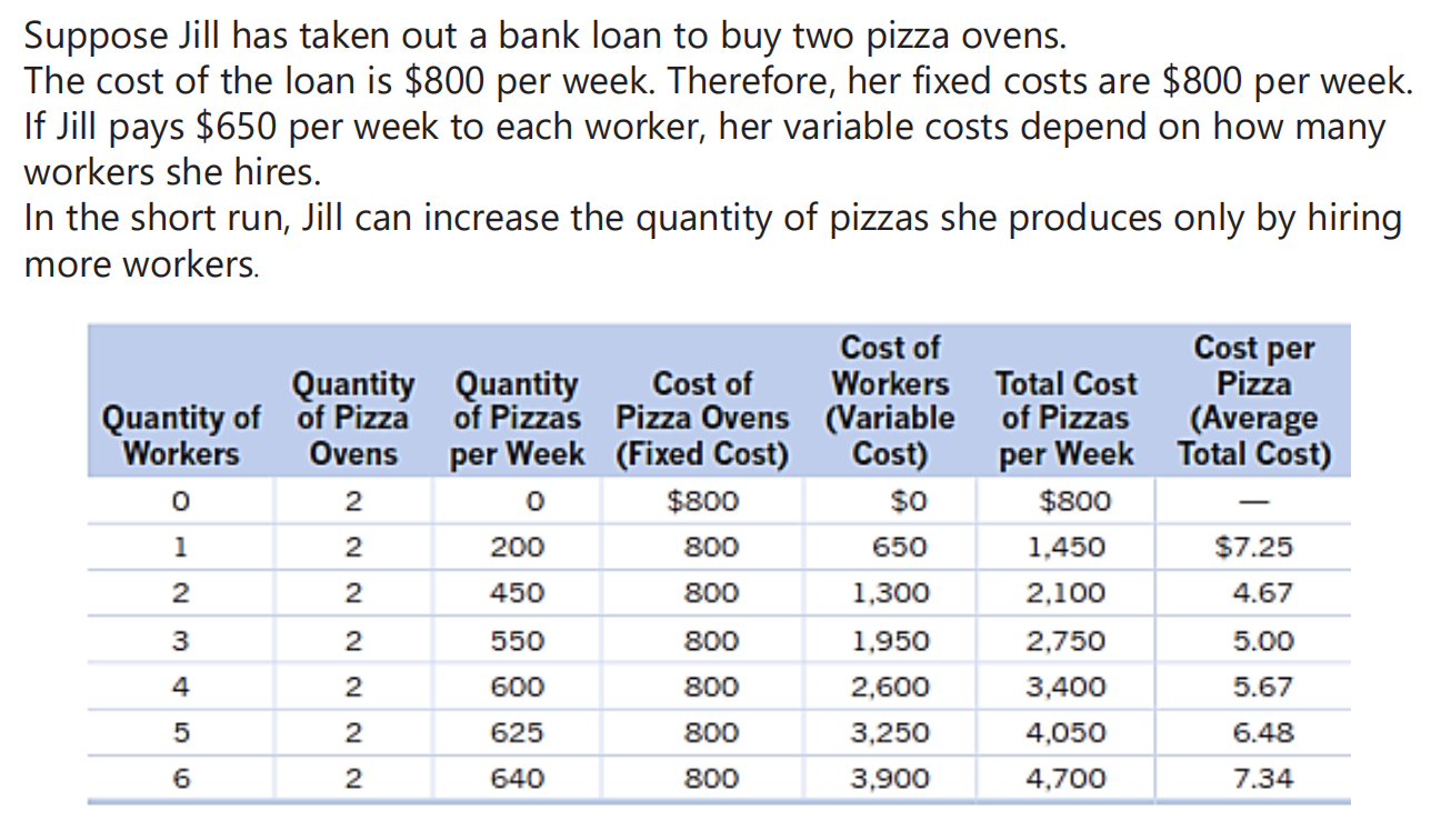 (吉尔的比萨烤箱代表了固定成本,因为无论生产多少比萨,烤箱的数量在短期内都不会变化。)