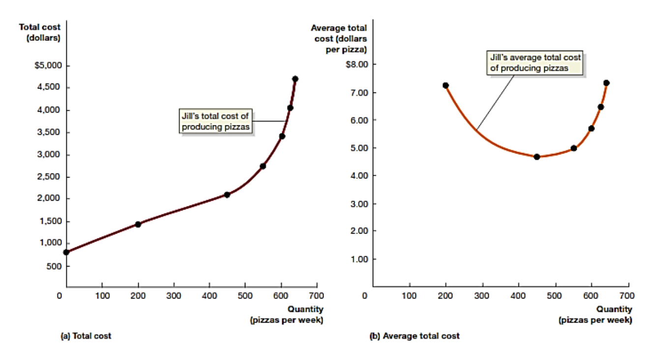 Notice in panel (b) that Jill’s average cost curve has a roughly U shape.