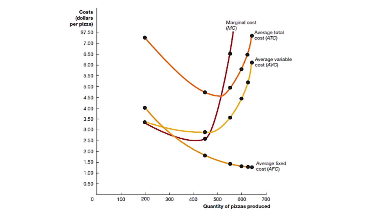 C点和D点是生产5,000个比萨饼的烤箱和工人组合,但它们的总成本是9,000美元。
