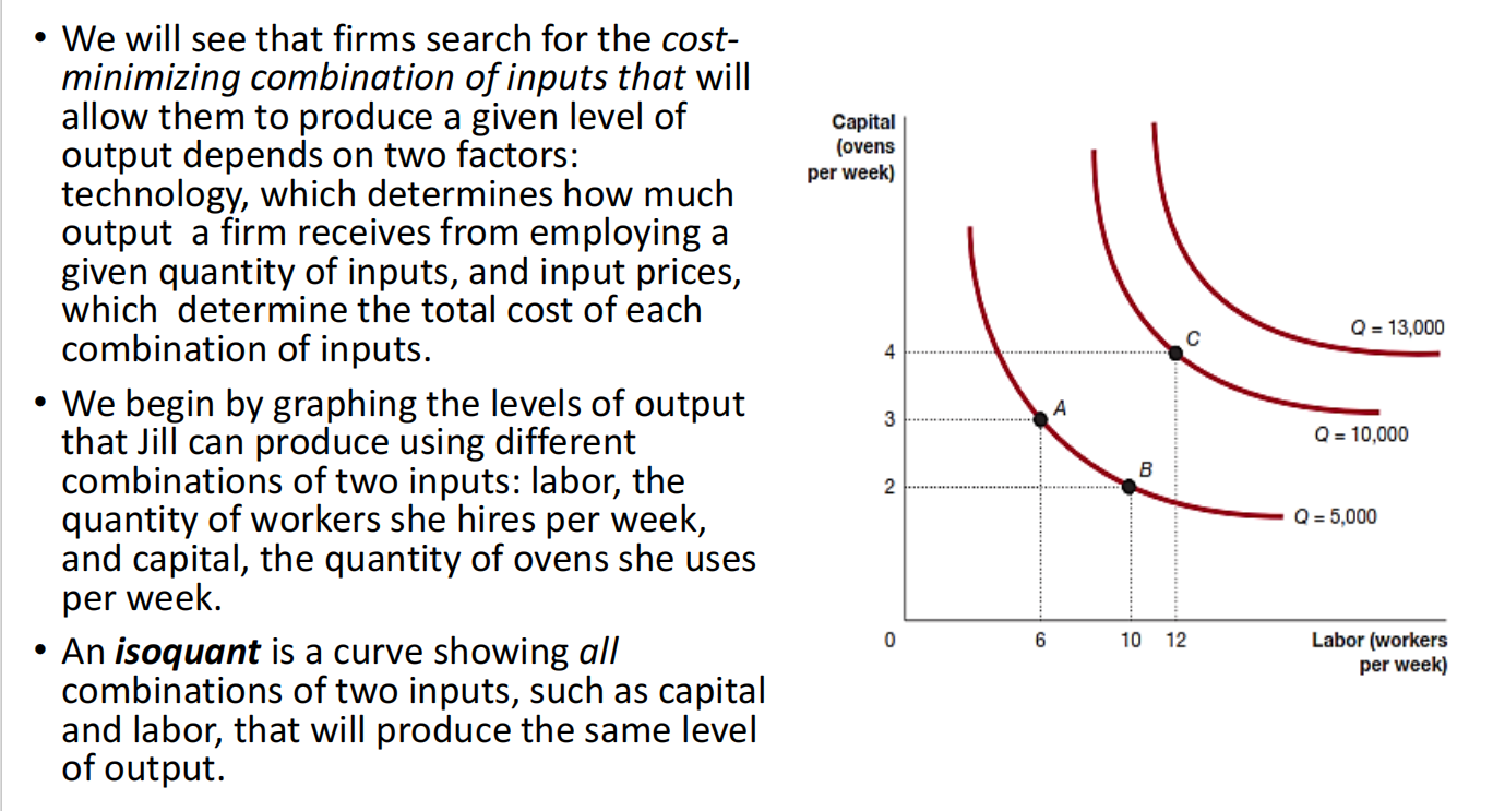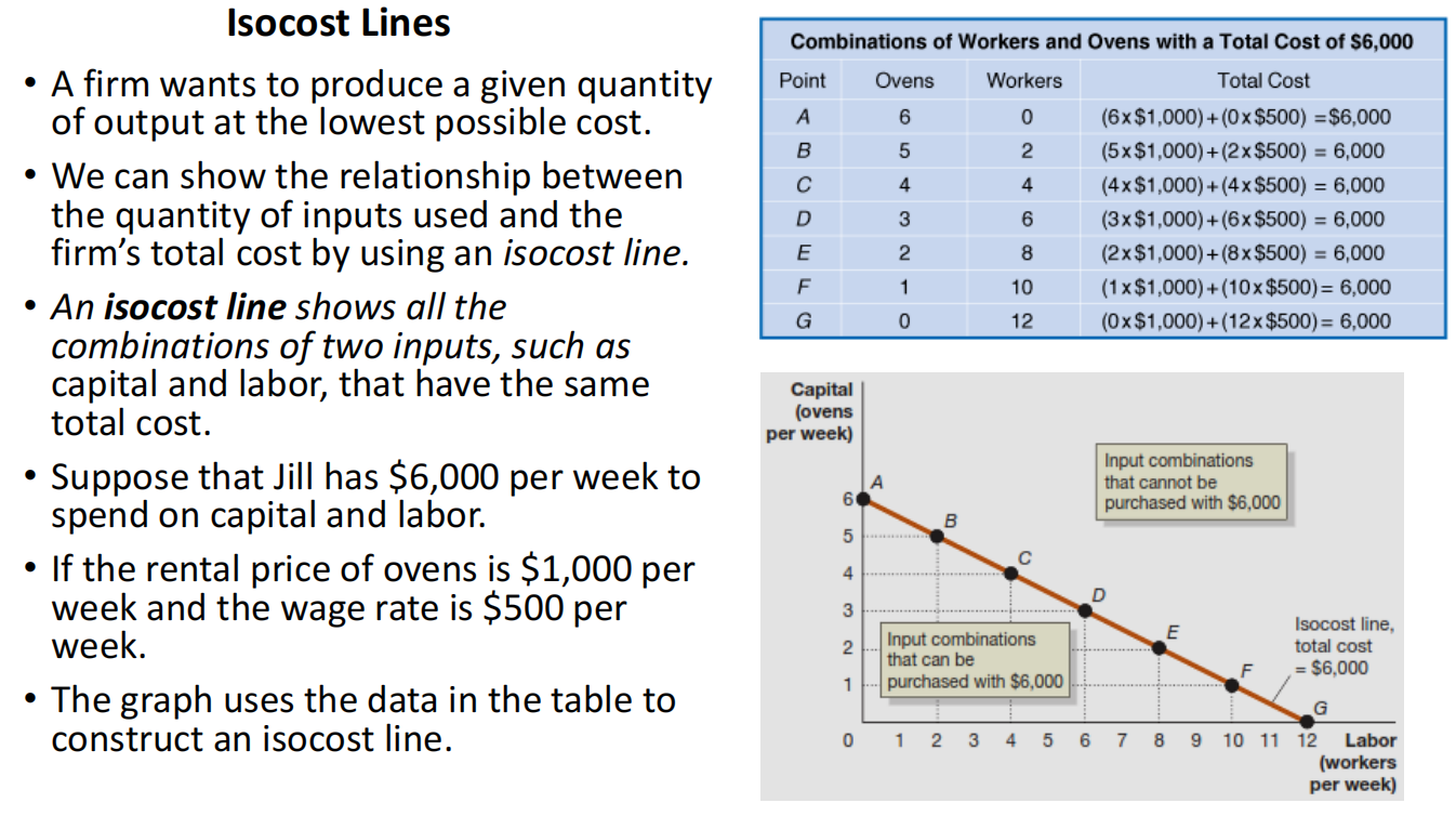 (如果劳动价格为每周500美元,资本(烤箱)的价格为每周1,000美元,那么等成本线的斜率为-1/2。)