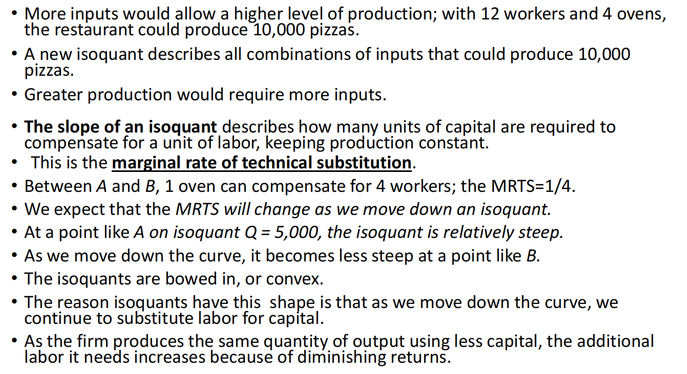 The reason isoquants have this shape is that as we move down the curve, we continue to substitute labor for capital.