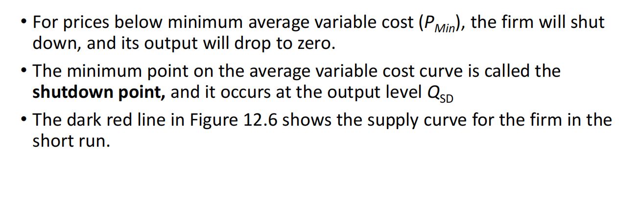 Shut Down Condition and the Firm’s Supply Curve(停产条件与企业的供给曲线)
