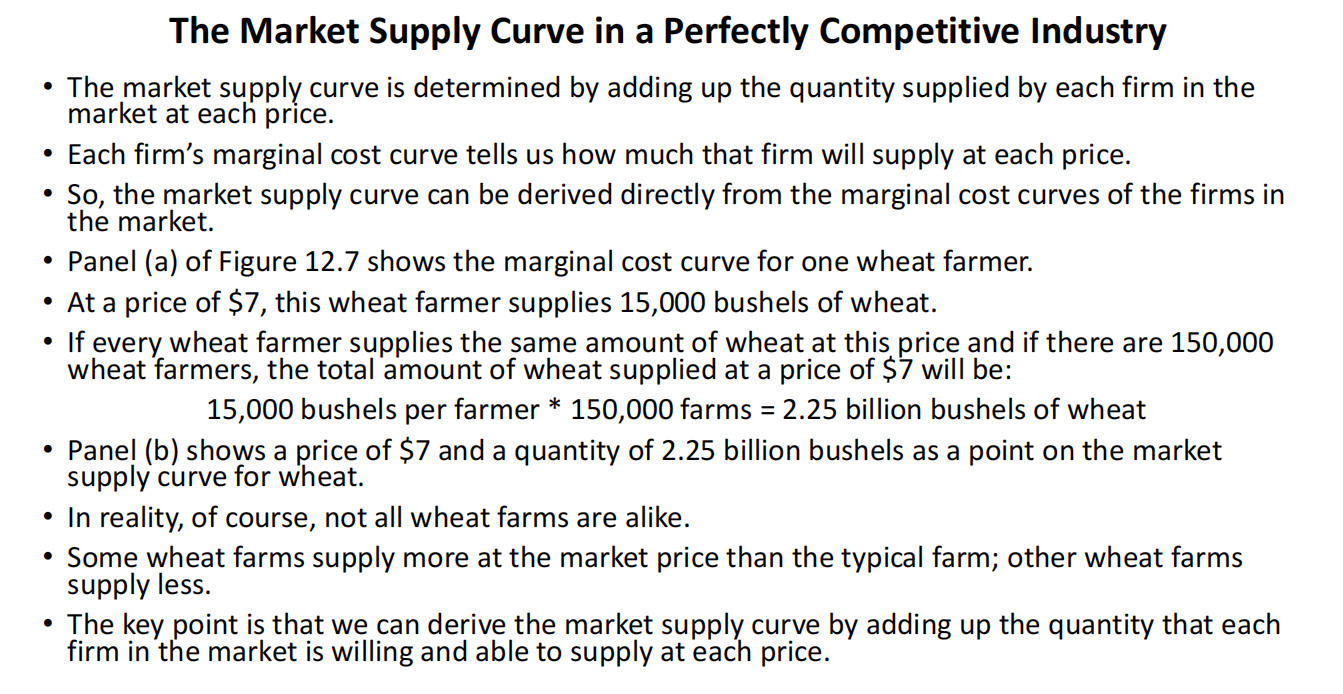 The Market Supply Curve in a Perfectly Competitive Industry(完全竞争市场中的市场供给曲线)