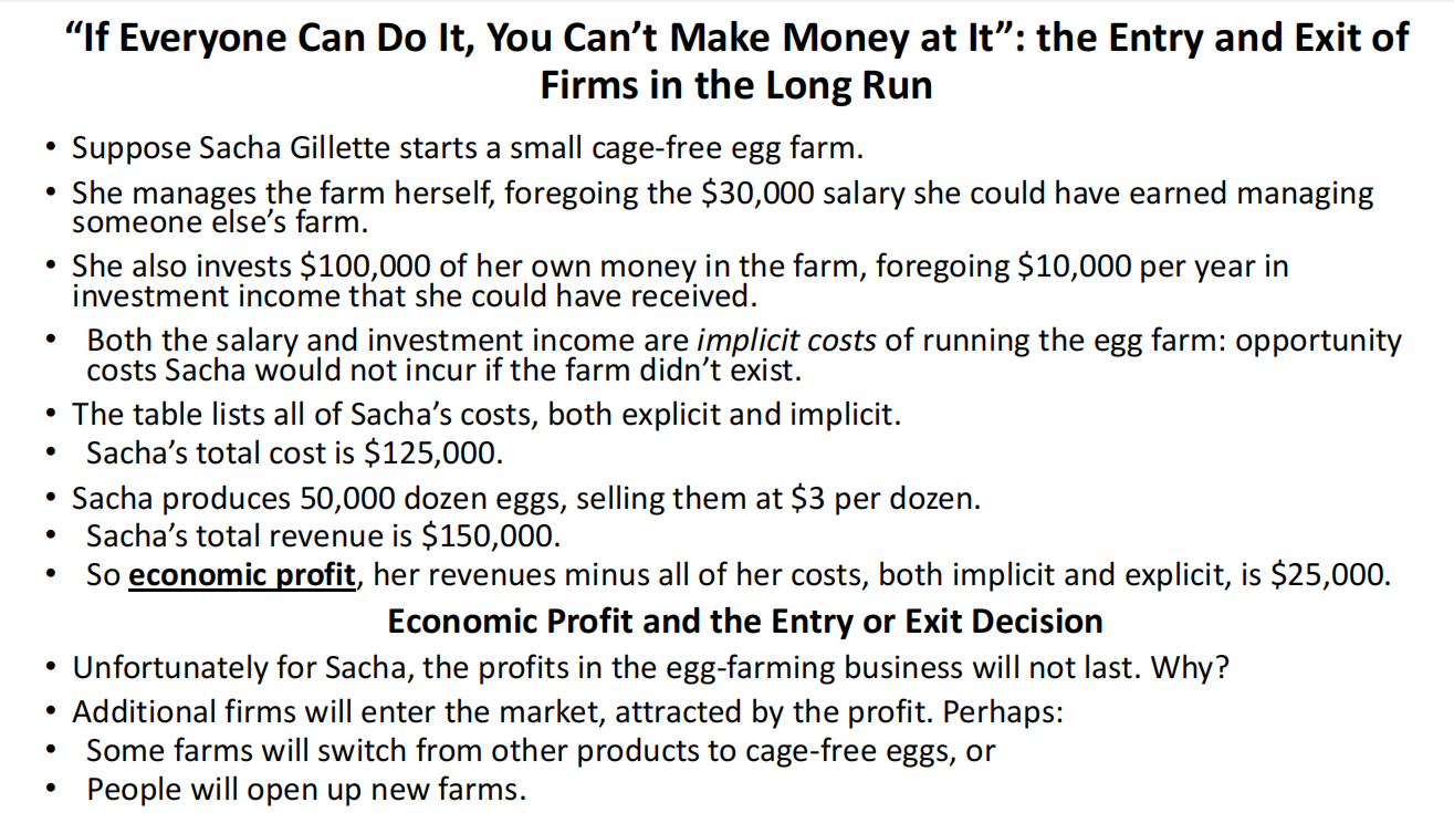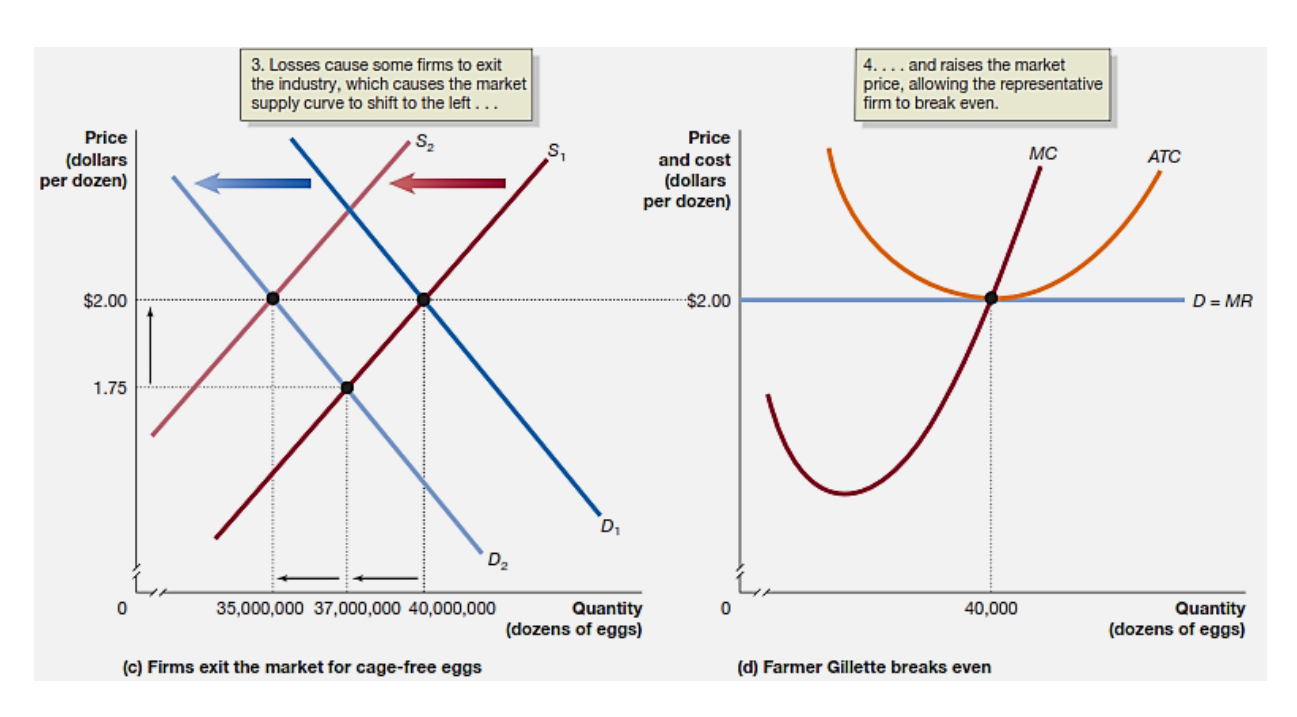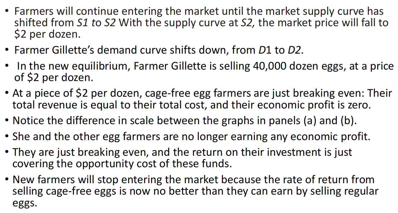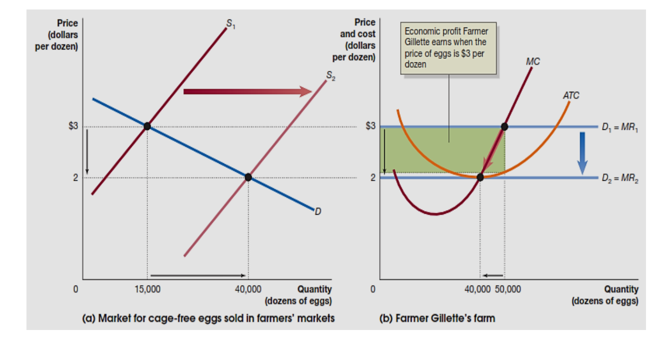 At this price, farmers are making an economic profit selling cage-free eggs, but the profit attracts the entry of new farmers.
