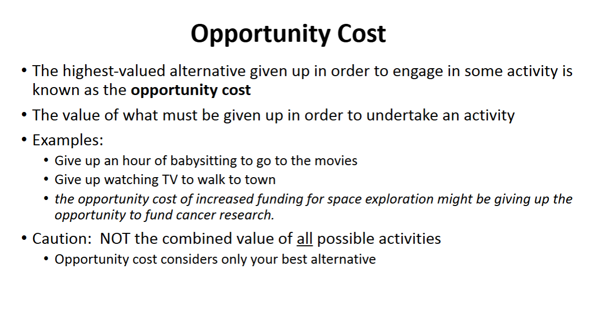 (如果你决定学习而不是去参加音乐会,机会成本就是你错过的音乐会的乐趣和经历。)