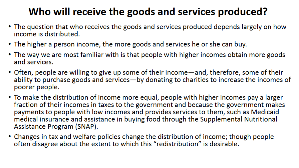市场而不是政府决定谁将获得生产的商品和服务。