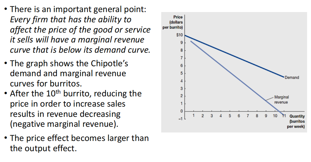 But its revenue decreases also; to sell another burrito, it reduces the price on all burritos.