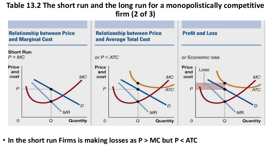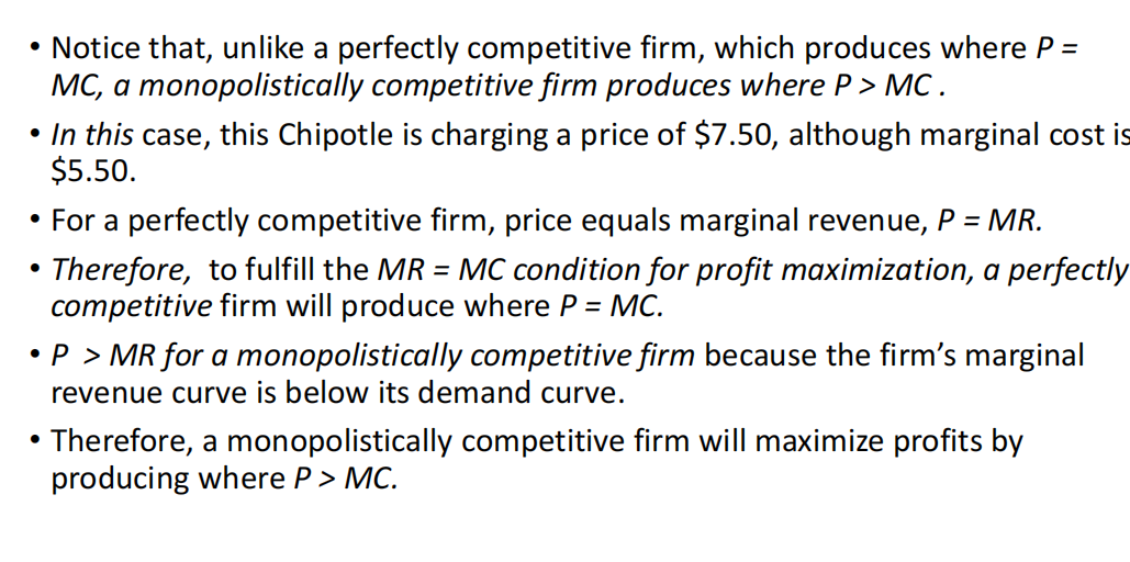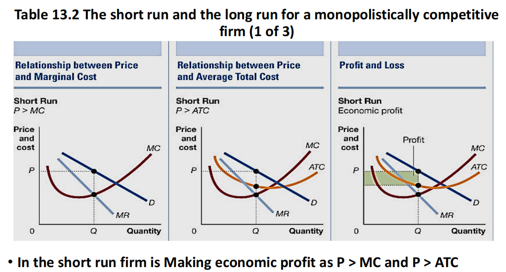 Monopolistically competitive firms share features 1 and 3; but their products are not identical to their competitors’.