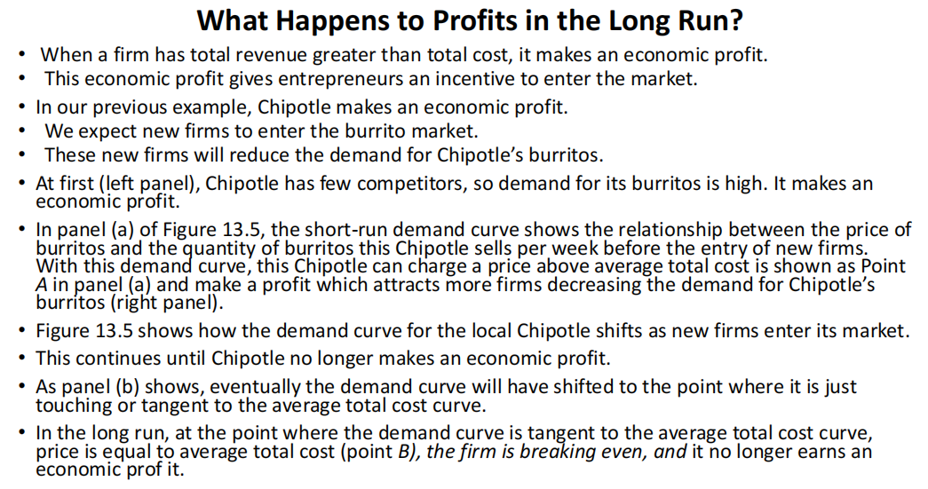 (在完全竞争和垄断性竞争中,企业可以自由进入或退出,导致长期经济利润为零。)
