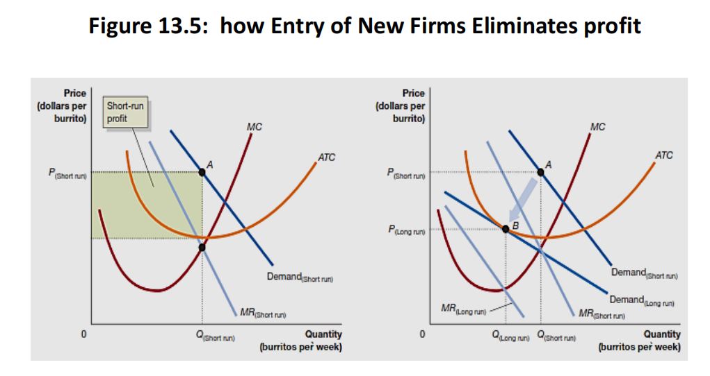 (垄断性竞争企业因产品独特性可能在短期内获得利润,但随着新竞争者推出替代品,这些利润会逐渐被侵蚀。)