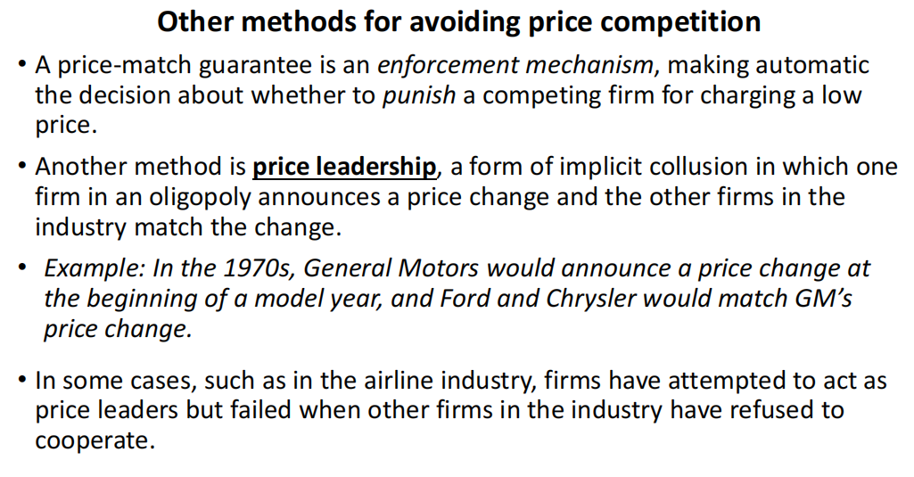(尽管在许多地区明示合谋是违法的,但默契合谋难以被发现,且在产业组织理论中通过重复博弈模型进行分析。)