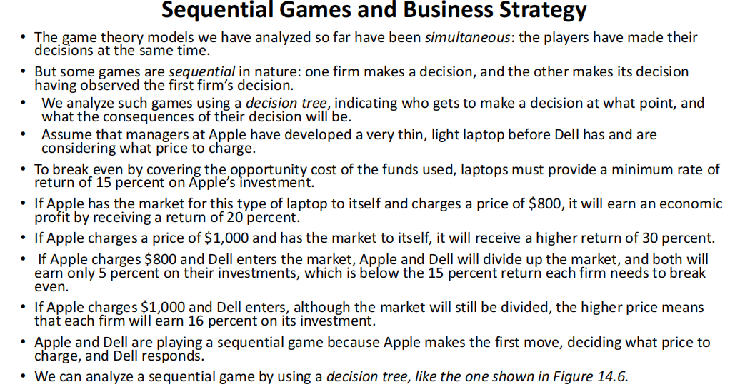 Example: In the previous section, Apple charged a low price to deter Dell from entering its market.