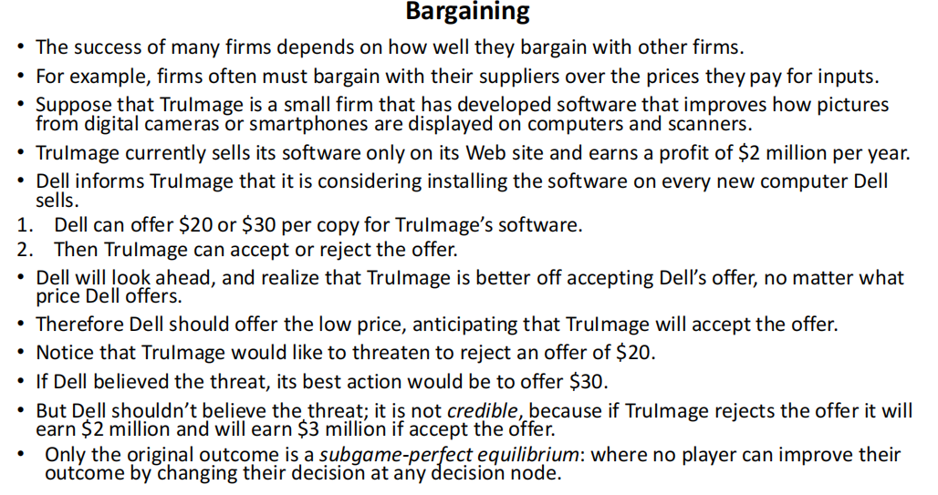 • But Dell shouldn’t believe the threat; it is not credible, because if TruImage rejects the offer it will earn $2 million and will earn $3 million if accept the offer.