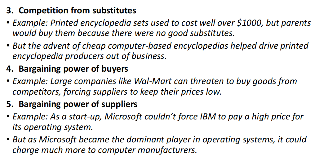 Example: As a start-up, Microsoft couldn’t force IBM to pay a high price for its operating system.