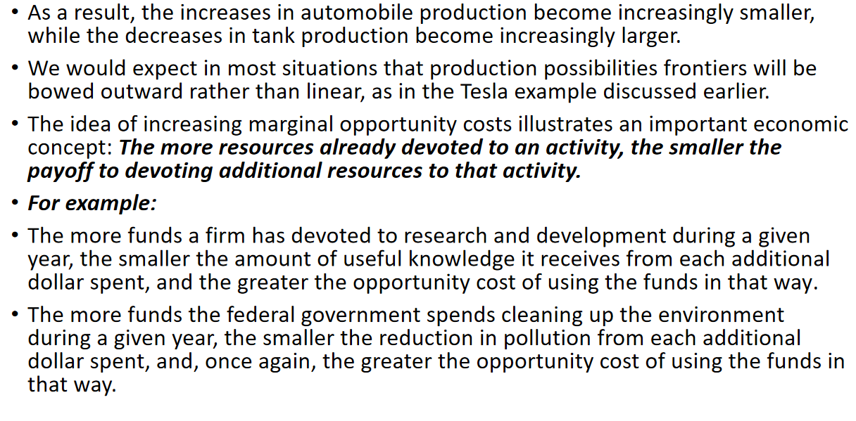 (例如,生产可能性前沿越陡,横轴上商品的机会成本越高。)