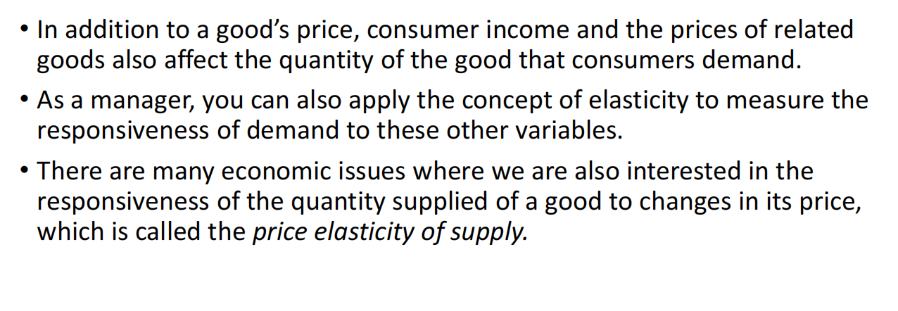 As a manager, you can also apply the concept of elasticity to measure the responsiveness of demand to these other variables.