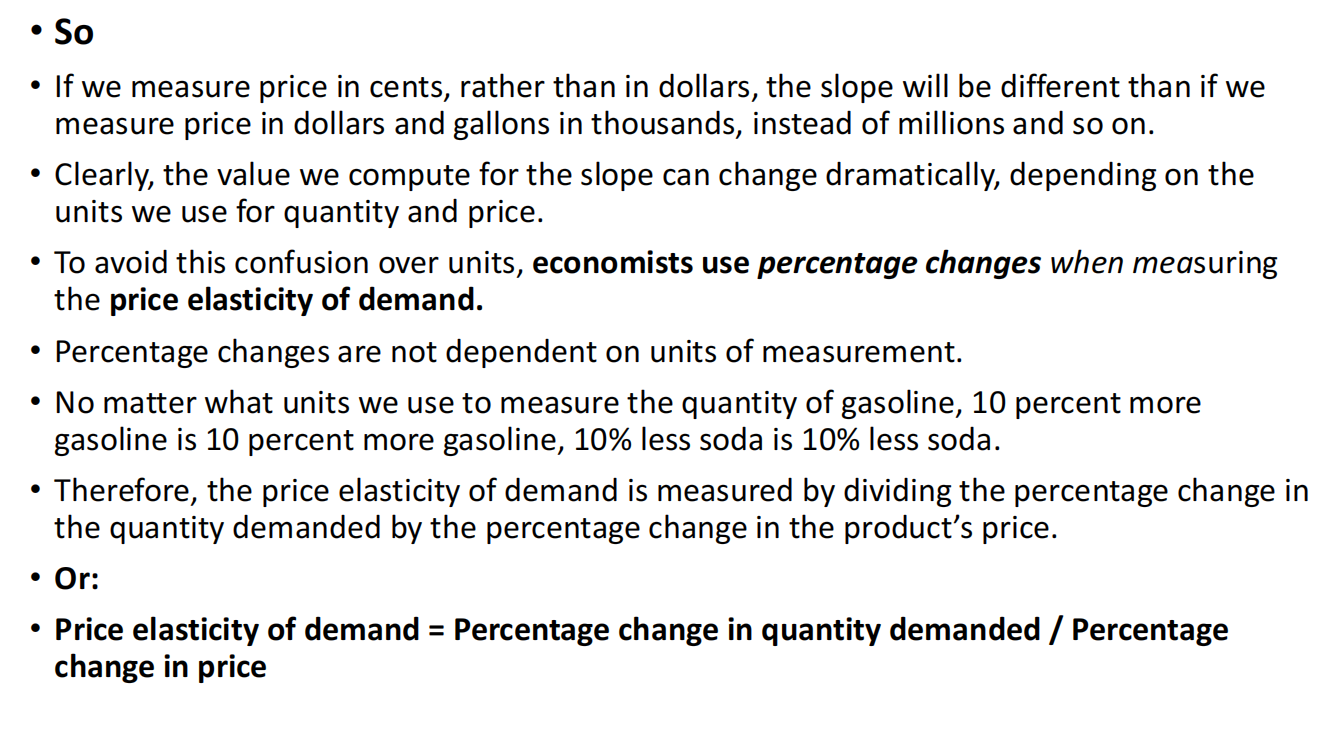 To avoid this confusion over units, economists use percentage changes when measuring the price elasticity of demand.