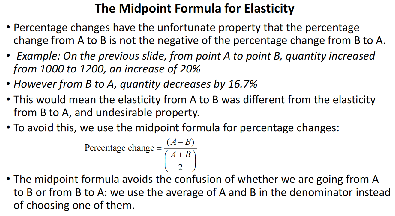 3. The midpoint formula will give us the same value whether we are moving from the higher price to the lower price or from the lower price to the higher price.