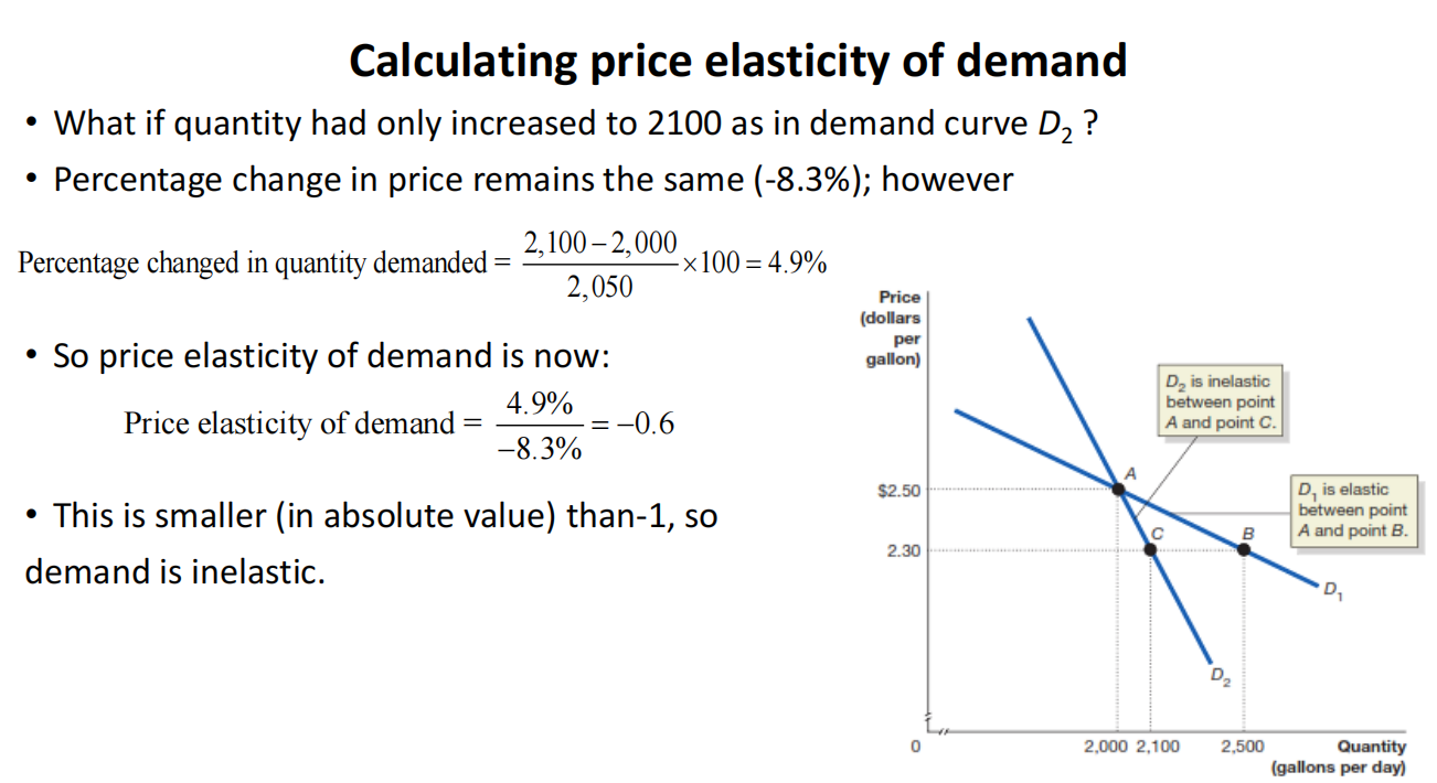 • So, the elasticity of demand is 4.9%/-10.5% = -0.5.
