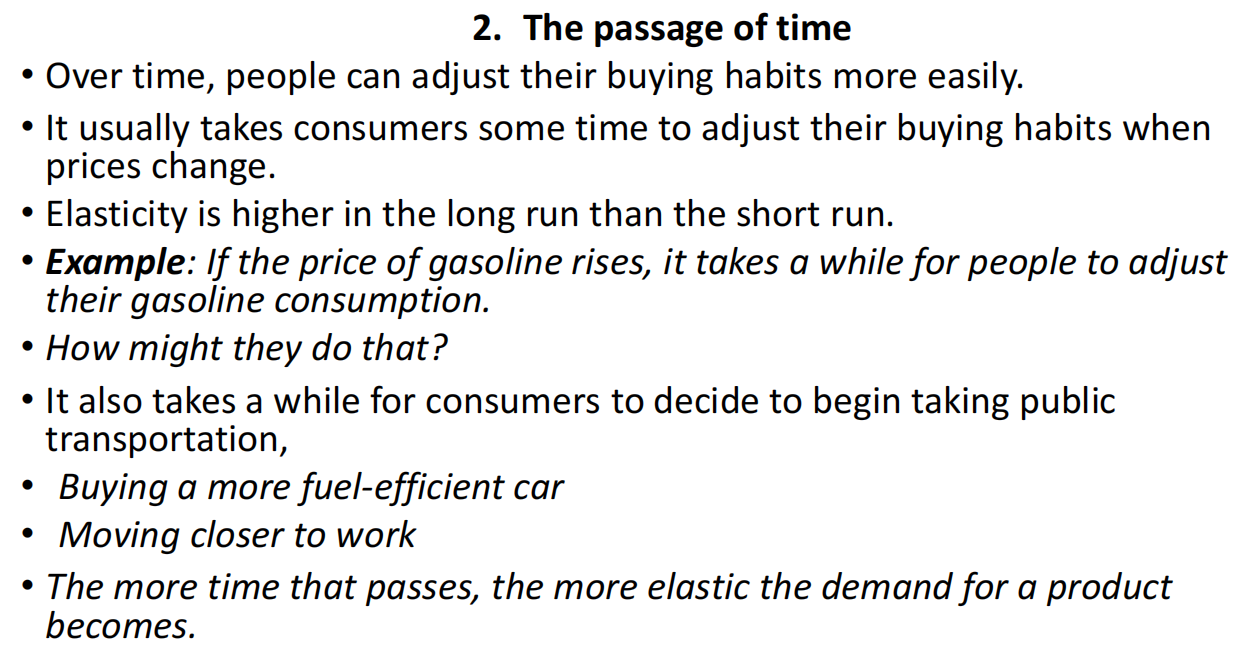 Example: If the price of gasoline rises, it takes a while for people to adjust their gasoline consumption.