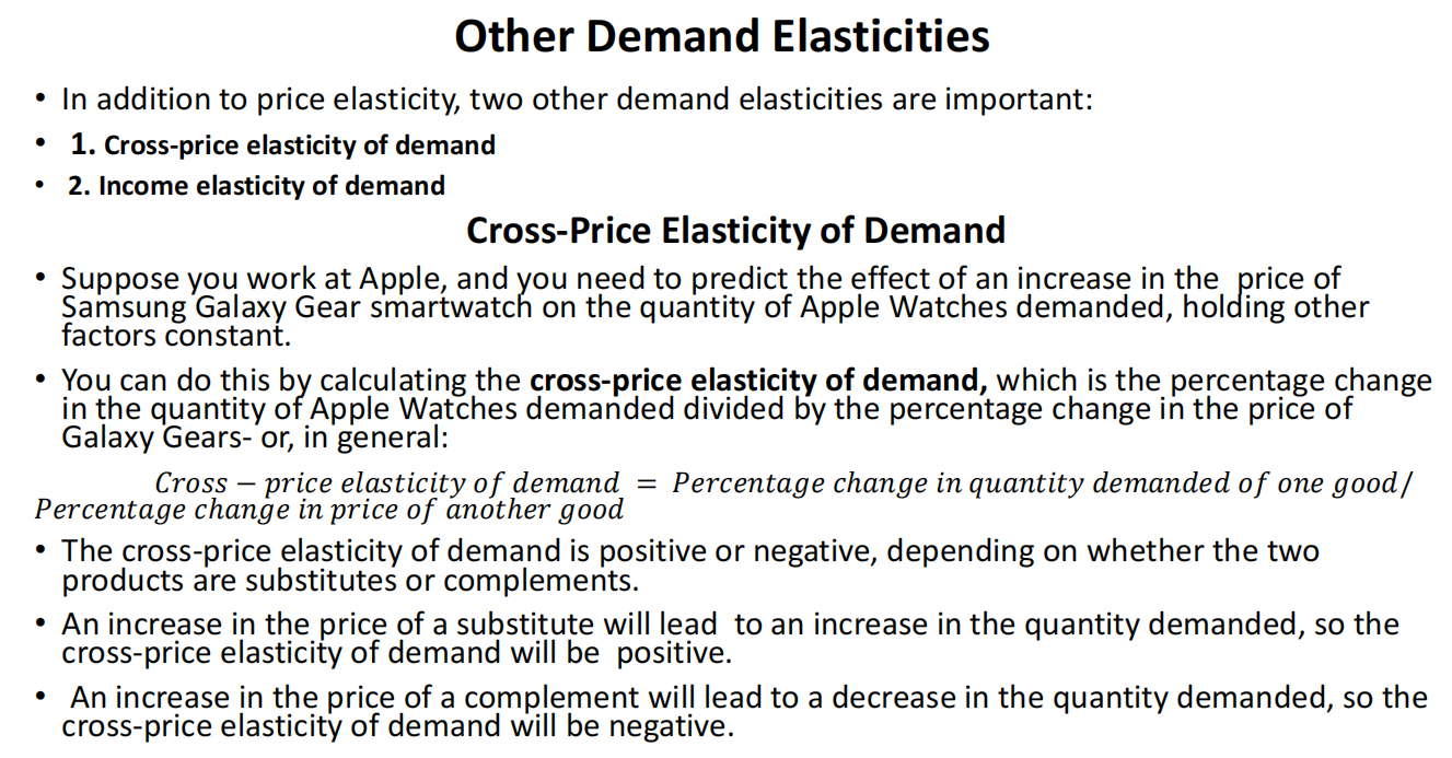 例如:Nike 有许多替代品(如 Reebok、Adidas 等),因此其需求价格弹性较高。